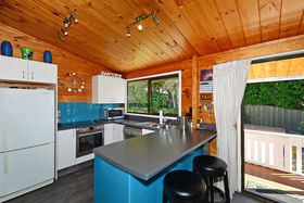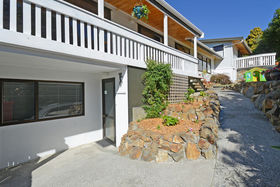 Meander up the path from the large double garage and you will find the lower level - fully equipped for entertaining, this stylish kitchen/dining space flows perfectly to a super sized lounge. Year round this light filled space captures fantastic sun and the view in all directions is superb.