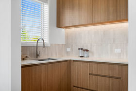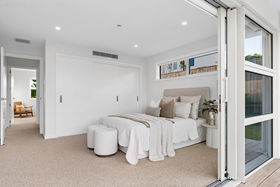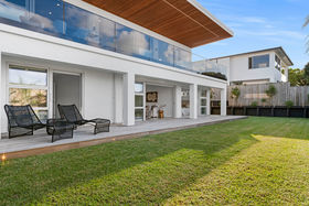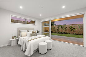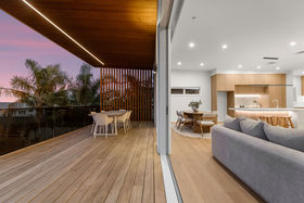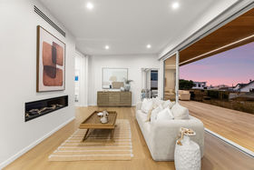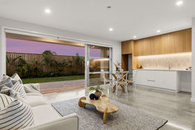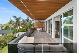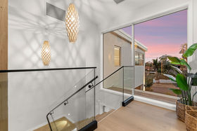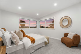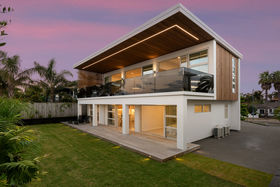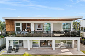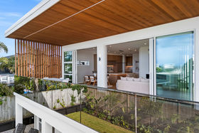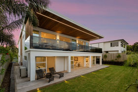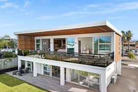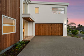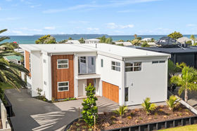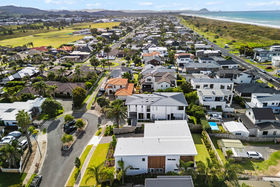 Set against a dazzling coastal backdrop, this luxurious new home situated on a highly desirable, well-established cul de sac sits close to shoreline and surf. Capturing wide panoramas of the Pacific Ocean and Papamoa Hills, a simple linear aesthetic influences the architecturally designed 347 sqm (approx.) residence complete with layout suited to multigenerational families or guests. A full-length balcony featuring a strip-lit Alaskan Cedar soffit, offers a dress circle rendezvous for alfresco dining and sundowner drinks. The flush, sill stackable sliders separate the balcony from a bespoke media room and spacious open plan living and dining areas. The engineered oak flooring extends to a customised gourmet kitchen with scullery where high-quality cabinetry, porcelain benchtops, and state of the art appliances dominate. A central American White Oak stairwell atrium capturing picturesque vistas, features iconic David Trubridge fittings. Three underfloor-heated, porcelain-tiled bathrooms are supported by a separate powder room. The ensuite and powder room feature LED backlit mirrors, while monsoon shower systems are included in the guest bathroom and master ensuite. Five bedrooms include a substantial master suite upstairs while downstairs, the self-contained guest area shares a third lounge with a chic galley kitchen and pantry. This assigned domain benefits from exterior flow to wide decking and fenced lawns (with room here for a pool.) The energy-efficient high-tech residence with elevator between floors, has temperature-controlled ducted heating and cooling, gas fireplace, extensive insulation, and Low-E thermal glazing in upper floor entertainment zones for year-round comfort. Elevated to maximise its flat, freehold 669 sqm (approx.) tropically landscaped grounds, the house offers internal king-size double garaging, an outdoor shower for rinsing off after the beach, and generous on-site parking for a boat, jet ski, or campervan. Close to a range of shopping options and zoned for Papamoa Primary and College this unparalleled lifestyle offers endless summer fun whether as permanent abode or luxurious holiday home.